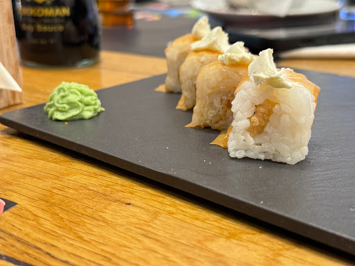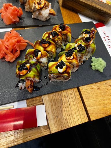 This is what we ordered: Crazy california x2 (8) Green dragon (9) Royal bako rolls (23) El diablo (10) Crispy shrimp tempura x2 (8) Mango california (4) Shrimp tempura Shrimp almond tempura