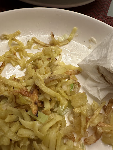 The pork i ordered was mostly fat and a bit of meat, covered by tons of sauce. The chicken was uncooked for 1 friend ( gong bao) The chicken was uneatable for another due to how much oil it was. My fries gong something were oily as…., it can be visible in the photo.