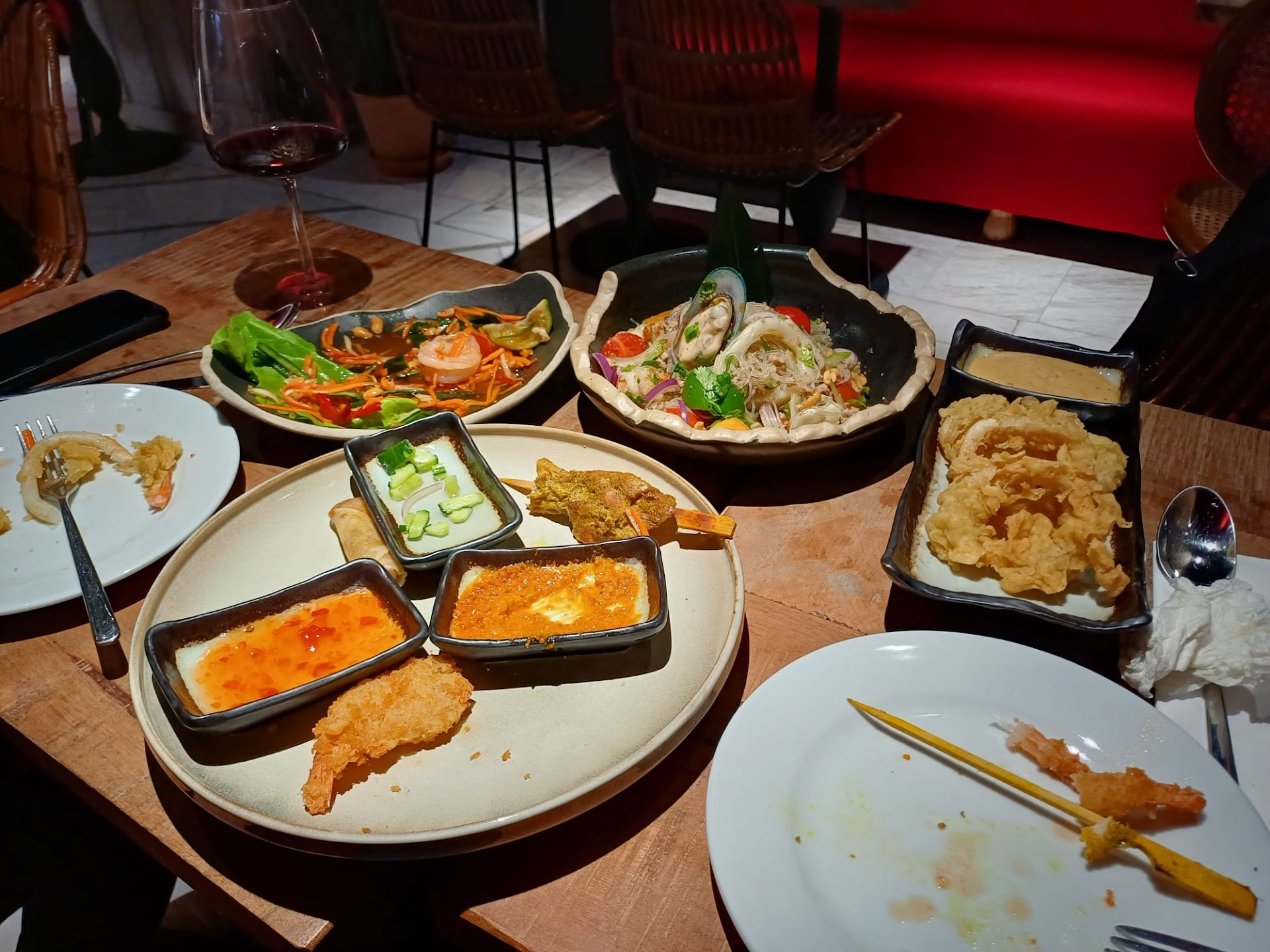 Read moreA true gem in the heart of Bucharest. I was married to a Thai, and I lived in Thailand for 3 years, in a non-touristy area. I can tell that this restaurant serves the most authentic Thai food in a very cozy atmosphere. I was saddened to read all the pretentious reviews from some of the Romanians who, in the best-case scenario they went to Pataya for 3 days (or little Moscow as I like to call it) and they think they know Thai cuisine. They should be ashamed of themselves. The owners of this restaurant are Thais and they put a lot of money, effort, and love into this place. It makes me mad how some wanna-be local guides pretend to know everything and they denigrate such amazing place. I hope and I know that karma will one day do justice. I ordered Som Tom and it was spiced and flavored to perfection. When the server heard that we were there to celebrate our anniversary, she called the owner herself who personally came to the table, congratulated us, and offered us dessert and two glasses of wine at our liking. And then she spent some time with us at the table, trying to learn our life story. That is something I have not yet experienced in Romania. As American, I can certify that this is true American customer service at its best. I will post some pictures but unfortunately, I forgot to take a picture of the dishes when they came to the table. A message to the owners: my only regret is that I can only give you 5 stars. Please continue to do what you do, because you are truly amazing. Don’t listen to anyone. You grew up with Thai food and you know Thai flavor better than any of those wanna-be connoisseurs. They just go there to show-off on Instagram.