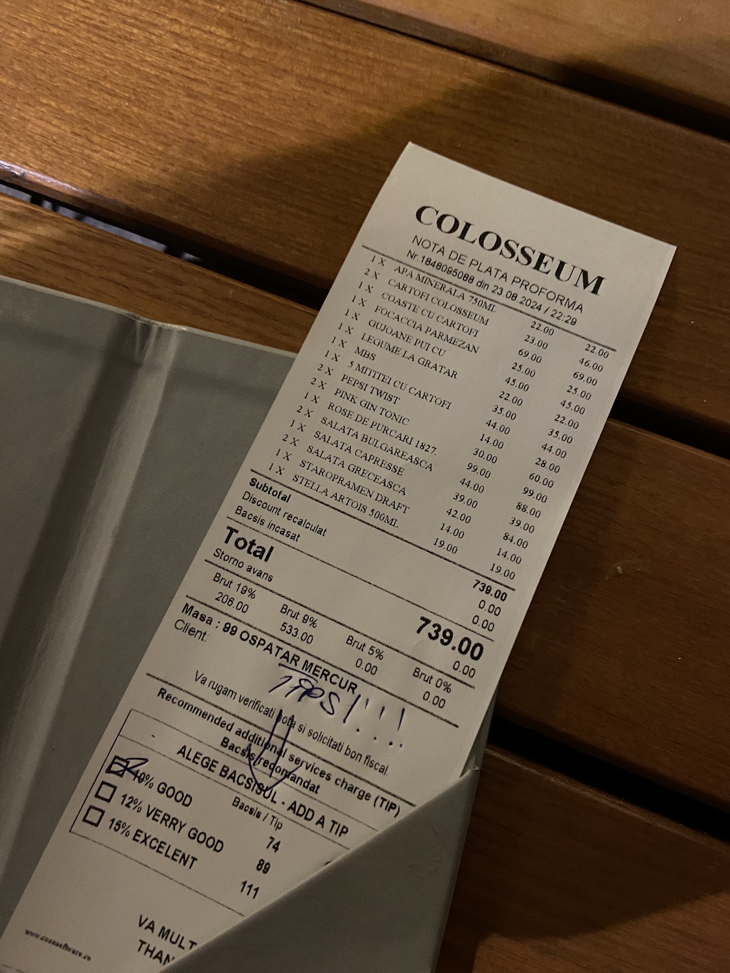 However, the payment experience was very disappointing. When I declined to leave a tip, the server became visibly angry and repeatedly asked why we wouldn’t tip. She raised her voice and insisted that tipping is mandatory in Romania, which created a very uncomfortable and hostile situation. I explained that I also work in hospitality and that tips should never be demanded. Her response was: “In your country maybe, but here you tip!”.