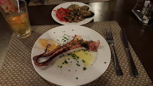 Interesting place. Looks good from the outside but once you get in it's a rollacoster of frustrations and disappointments. Service is rather slow and messy. After our appetizers we've received a new set of fork and knife thrown directly on the placemat. I asked for some napkins but after waiting 5 minutes for that I just went and get some from the bar myself as the food was getting cold and I simply wanted to clean a bit the cutlery that rested on the placemats. The food is mediocre, decent at most. I had a sea food salad as appetizer which tasted only like vinegar and olives. Luckily we've also ordered a focacia and that was really good, freshly made, served fast and superdelicious. The second course was the grilled octopus with grilled vegetables. The octopus wasn't overcooked but lacked flavor. The vegetables were absolutely discussting. I was glad they were served on a separate plate. (photo uploaded) My wife ordered grilled shrimps with oil and garlic and baked potatoes on the side. They were tasty but the portion consisted of only 5 small shrimps. In the beginning we thought maybe we were unlucky but during the dinner a table of 6 close to us was also wildly compalingin about the service and the food which sort of made us think that that was indeed the standard there. If you must eat at Trattoria Roma your best bet are pasta and wine. It's rather hard to mess up pasta and they actually have a nice variety of wines. If you're looking for Italian dishes, look...