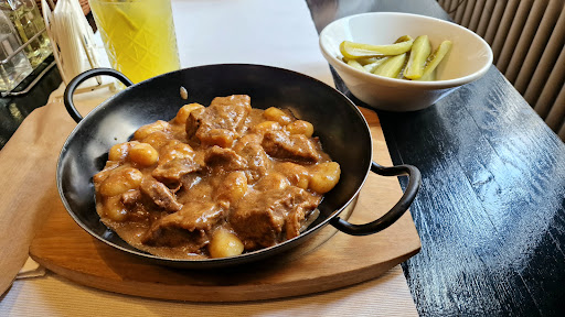 Food was excellent. I had beef goulash which is basically a stew of meat and vegetables with various condiments. It was really tasty.