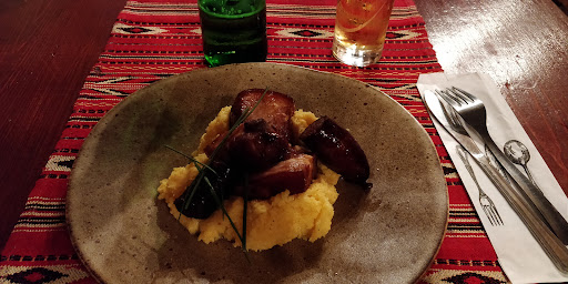 We had a wonderfully bad experience going to this place, after it as recommended. There's this one guy there - sort of a manager, i suspect - that believes he's the center of the universe and every single costumer is out to get him. He bad mouthed everyone that left, while we were there. Funnily enough, he bad mouthed us too, as we were leaving, for telling him that's rather unpleasant to have a person from the service staff go around swearing and puffing at everything. Maybe it wasn't his best day. It definitely didn't get any better after that though. To be fair, our waitress - although a bit lacking in confidence - did her best. The food, the utensils and the drinks..were like the mood on the unfriendly guy, as follows: a tasteless lemonade in which the tap water provided the most "flavor" a still-smelling water glass for sparkling water a cold platter with horrible "sunca" and cold re-heated "jumari". the pickles "salad" was a mere assembly of "can't be asked to chop those" cucumber, tomato and 1/4 of a pepper. cold rice for a duck dish. The duck was dry and very fat. rustic potatoes that were cold, soggy and tasteless. Looked and tasted as if they were cooked a week before. a joke of a chicken breast dish (a slice of melted cheese on top of a piece of dry, but dripping piece of chicken is what "gratinat" means here) the cold polenta that came for a stew was without salt. the bread was somewhat fresh, but not entirely cooked through. the place was filled with flies and there were empty boxes lying around on the floor.