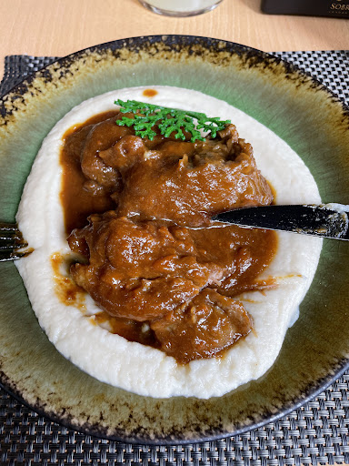 I recently dined at this restaurant, previously known as the old Terasa Anna, which has now moved. I decided to try the beef cheeks with puree, followed by pancakes with Nutella. The portions were quite generous, and overall, it was a decent meal.