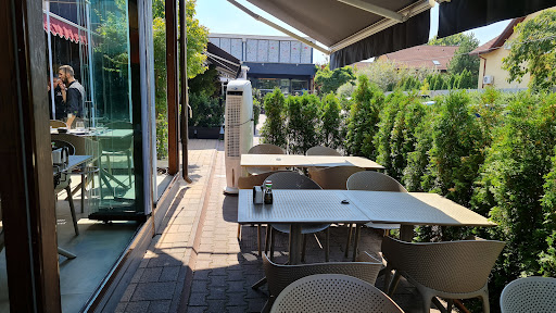 Spațiul e bine amenajat, folosit la maximum, modern, citadin, occidental. Terasa e și ea mică, separată printr-un perete de sticlă de sală, așa că face corp comun cu aceasta până târziu în iarnă. Au o perdea de plante înalte care o apără de aleea cu parcarea pentru mașini.