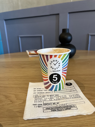Read moreGreat place for a great cup of coffee and a pastry. The atmosphere was bright and lively and it had a great vibe. I was a little concerned on the gimmicky name but that was not a concern. The furniture was comfortable and we stayed for a little bit while we enjoyed the coffee. There was limited seating outside and even early in the morning everything was taken outside.