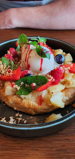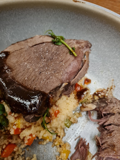 Read moreAm fost in acest restaurant și am testat trei tipuri de mâncare, un starter, un main course și un desert. Începem cu începutul: chelnerul a fost foarte atent și profesionist. Mâncarea a venit repede, debarasarea mesei s-a făcut rapid, toată atenția lui a fost orientată către noi. Ca feedback constructiv, recomand o mai buna colaborare intre el/ei și bucătărie. Practic, ar trebui sa cunoască la perfectie meniul și componența acestuia. Recomand bucătarului sa invite toți chelnerii și să le prezinte meniul, precum și modalitatea de gătire a acestuia pentru ca ei (chelnerii) sa cunoască fiecare detaliu, mai ales că restaurantul este unul ce se vrea a fi fine dining. Am avut ca starter somon gravlax cu brânză de capră și fructe de pădure. Nimic de reproșat aici. De la plating la gusturi, totul a fost bine echilibrat iar porția suficientă. Tot ca starter am servit buratta pe un pat enorm din crutoane cu un sos de roșii, cu busuioc și ulei de măsline. Patul acela de crutoane a fost enorm și prost proporționat, luând în calcul că acest fel de mâncare este doar un starter. Putina textura data de câteva crutoane ar trebui sa fie suficient. Aș pune mai mult busuioc verde langa buratta și de ce nu, câteva roșii cherry. Ca main course eu am servit midii cu sos de roșii și ardei tricolori, mi-a plăcut mult. Soțul meu a servit salata cu somon caramelizat, susan și vermicelli. Salata este foarte prost echilibrata, a avut mult prea multa salata verde, somonul a fost tăiat mult prea mic, iar avocado la fel. Salata versus somon și avocado ca proporții a fost greșit echilibrata. Parea că e mâncare de pui. De asemenea, susanul a fost presărat crud peste. Recomand un mix de salata mai divers și mai fresh, somonul in bucati mai mari, la fel și avocado. Dressingul nu a fost suficient de fresh, as fi vrut niste portocala poate. De asemenea, 1-2 felii de focaccia langa salata, alaturi de proporțiile corecte ar schimba complet rețeta și ar face-o una delicioasa.