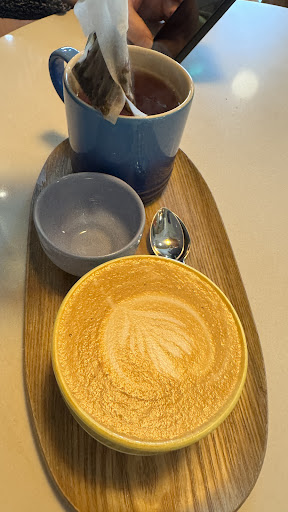 Forget everything you thought you knew about eggs and prepare to experience true egg centric culinary delights. We entered this place not knowing what to expect, I mean it’s eggs, what’s new about eggs, people have been cooking eggs for centuries. But not like this! The decor, the food, the service, the drinks, everything was of an eggseptional quality (sorry, couldn’t help myself) I had the Asterix & OooBelix (omelette on toast, with coleslaw, sausage and cheese) while my wife had In The Mood For Love (poached eggs with fish and asparagus) and together we ventured into food paradise. Both were cooked to perfection and a real joy to eat. Accompanying this I had an Earl Grey tea and she had a Capuccino followed by a Latte. The drinks were…. Well, they were drinks, let’s face it you have to be pretty unskilled in the kitchen to go wrong with a tea bag and water, but my wife did prefer the Latte to the Capuccino. She did enjoy the capuccino but the Latte just managed to pull ahead in the taste race.