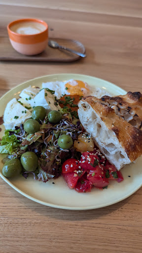 Read moreVery nice place, the food is great and very tasty if you want a breakfast or brunch. They have quite a variety of options for all tastes. Exactly what the center needed. There is also a lunch option but I haven't tried it yet. And the coffee is top 3 in the city. The atmosphere is very cute and cozy, depite the height of the space, it doesn't feel pretentious at all. The architect created a nice contemporary intervention with pastel colors while carefully preserving the old frescas. The staff was also very nice and friendly. Definetly will come back. Also loved the chairs :) P.s.: not a fan of reviews, but this place really surprised me and this is a thank you for them. I wish them long and and fruitful...
