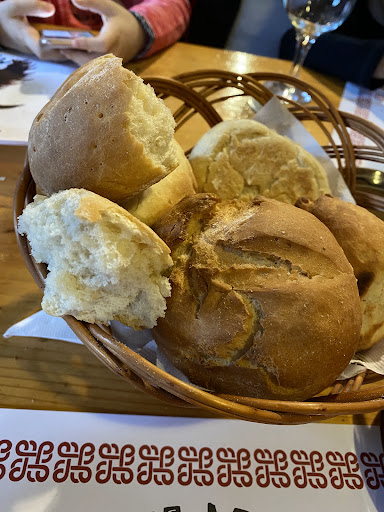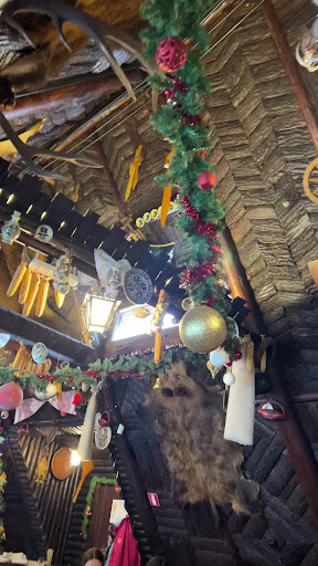 The food was good. I even tried bear meat — it tasted somewhat like beef, though I personally find beef tastier. Still, if you want to try something unusual, go for it. It’s priced at about €40 per 100 grams and comes served with potatoes and sauce. The chicken skewers were also nice, and overall, I would recommend their game dishes.