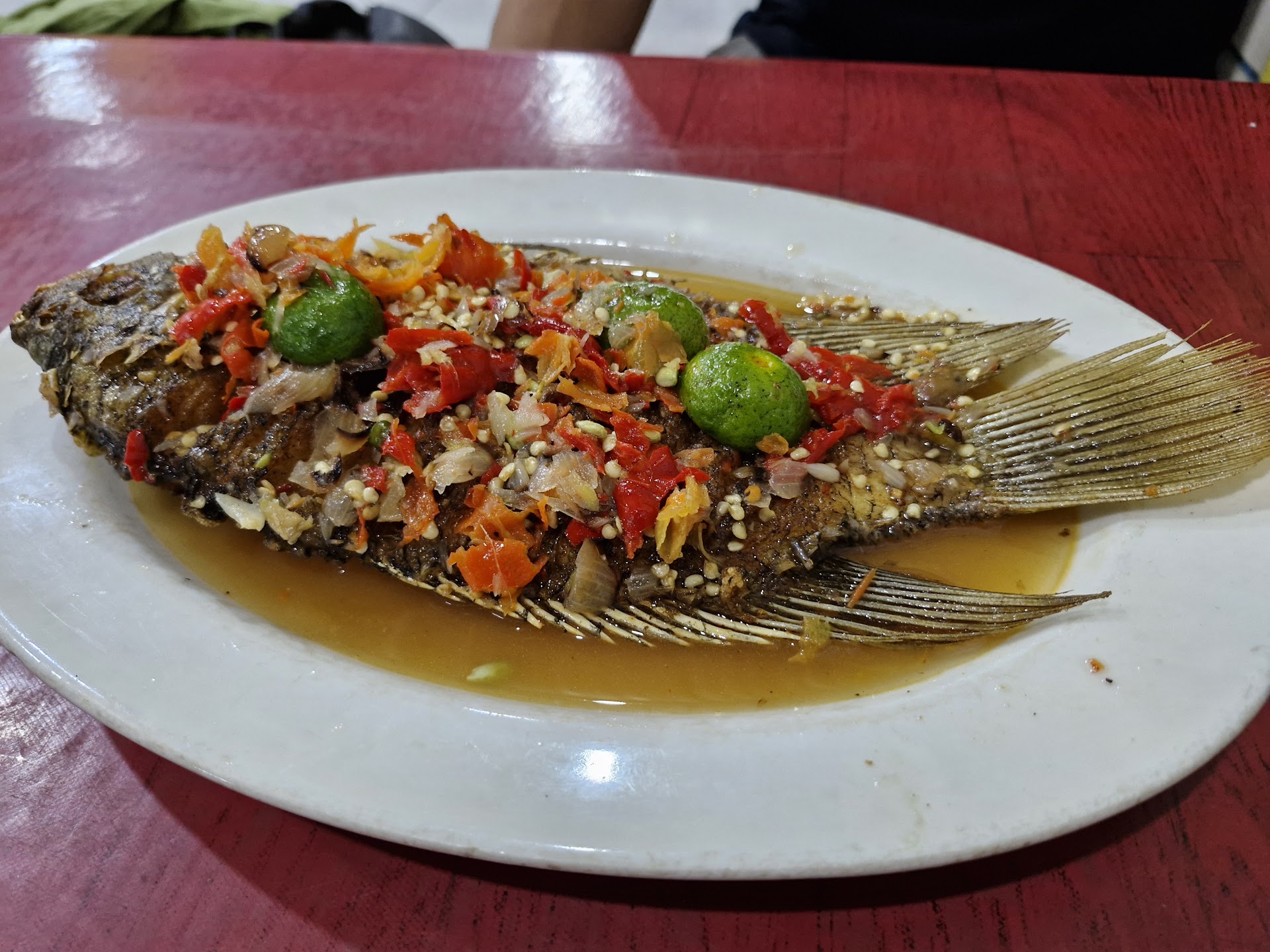 a 3 stars for the parking lots, 4 stars for the price, 3 stars for cleanliness but i rated 5 stars for the food's taste. So all in all 4 stars rating was fair enuff rite..My mom often brought home some pepes ikan n pecak ikan, an authentic Betawi food from here. So this time i got the chance to taste it right from the place. And it was worthed. Though' it's been a lil' hot outside becoz of the temp but the food amazed me. The Corn Fritters aka Bakwan Jagung is crispy and tastuly also the fried batter tofu. and off course the Fab "Pecak Ikan Nila" spicy but crispy in a chillis and onion broth....