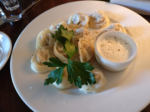 The whole restaurant is partially underground what little light dapples through the dusty windows lights up wrought iron antiques, Soviet era knick-knacks and dusty books. There are a lot of nooks and crannies and curved ceilings and it's easy to imagine yourself an onlooker in one of Dostoyevsky’s novels as various characters send off hurriedly penned letters in one of these smokey rooms to a favored femme fatale to further their plot.