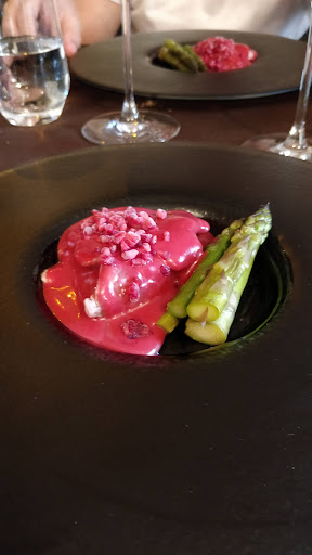 The asparagus wasn't cooked and while the meat was done to perfection it was topped by too much raspberry sauce, the fish lacked any flavour, and the dessert had too much gelatine so it became like stiff jelo