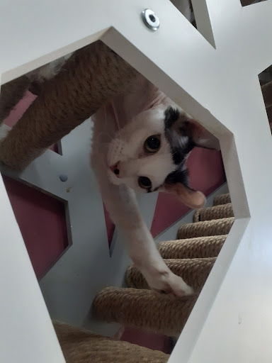 Read moreПосетили данное заведение во время отпуска с подругой. Как сказала сотрудница, вечернее время посещения одно из самых удачных - котики потихоньку просыпаются к ужину, а днём после завтрака большинство дремлет. Но так как у меня есть своя кошечка, для меня не новость, что коты ещё те сони и днём предпочитают видеть сны) Некоторые котики действительно дремали, но вскоре начали активную деятельность) Перед посещением рассказали правила общения, самое главное - котиков нельзя поднимать на руки. Есть котики, которые это совсем не одобряют, либо пугаются. Сначала не поняла, а затем согласилась - ведь если их будут постоянно таскать на руках, они и не будут идти на контакт, ведь посетители - незнакомые люди. Но меня настигла большая радость - откуда не возьмись на плечи ко мне прыгнул молодой сфинкс с забавными ушками) Не отлипал весь час, иногда изменял моим коленкам с коленками подруги. Мне кажется, так и должно быть - чтобы кот выбрал именно вас, это даже льстит. Потом нас с каждым котиком познакомили: мы впервый раз увидели мало того что коротколапого кота манчкина, так ещё и коротколапого лысика! Запомнился ещё большой шестипалый мейнкун Хэми - на первый взгляд опасный хищник, а на самом деле большой флегматик, тающий от почесываний шеи)) и разноглазые кошечки! Тяжело было запомнить всех, т.к в кафе живёт около 20 котиков, но даже эрмитажные коты (беспородные) - со своим характером и особенностями. Жаль, что не все котики пристраиваются: как мы поняли, оказывается кто-то из занимается благими делами - посещают хосписы, детские дома и т.д. Для пристройства у кафе есть второй филиал, где можно взять любого кота. А здесь большинство котов породистые, знакомство с ними поможет решить, какая порода подошла бы вам: например я решила, что британцы это не мое) Вредные, хоть и временами могут быть душками. В отличие от того же ориентального кота - очень хотел к себе внимания и обтирался то об ноги гостей, то сотрудников. К котикам явно относятся с любовью - животные не будут так ластиться к плохим людям, они чувствуют зло. Насчёт еды - полноценного ужина ждать не стоит, меню ближе к кофейне - но мне оно и надо было, угостилась лишь вишневым рафом в компании котиков, было вкусно. Спасибо девочкам за приём, надеюсь вернуться и в Питер,...
