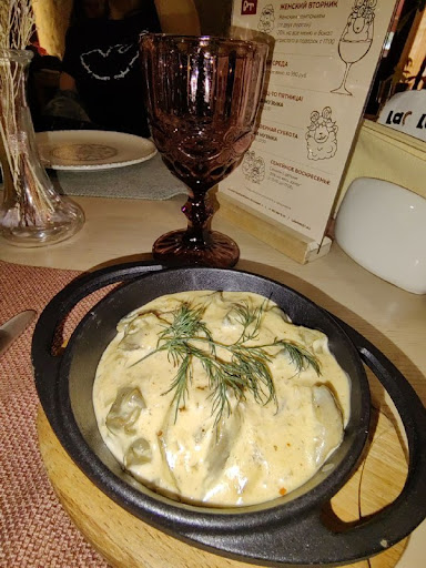 Меню большое - глаза разбегаются, что выбрать 🍤😝🥩 От морепродуктов до шашлыка 🍢🍖🍢 Мой выбор нынче пал на: Хинкали с камчатским крабом в соусе Том Ям (890). Прекрасно. Мне очень понравились, классная задумка. Хочу повторить. 5/5 Рапаны в сливочном соусе (730). Само блюдо хорошее, но я поняла, что рапаны - не мой продукт, который бы мне доставил гастрономическое удовольствие. 5/5 Креветки 🍤🧄🍤 чкмерули в сливочно- чесночном соусе (740). Люблю креветки, и это блюдо было вкусное. Не скажу, что это был шедевр. Это Просто Вкусно. 5/5 Мороженое. Шарики со вкусом Халвы, на вкус прям халва-халва и вкус Ром-изюм. Очень вкусное. 5/5 Чай. 🍵 Согревающий напиток - облепиха-манго (690). Подобные напитки - как русская рулетка - либо классно, либо бред. Здесь этот напиток Очень вкусный! Словила удовольствие от поглощения 😊☝️😊 5/5 Морс 🧃(190). Люблю морсы. Здесь вкусный морс с насыщенным, ярко выраженным, вкусом. 5/5