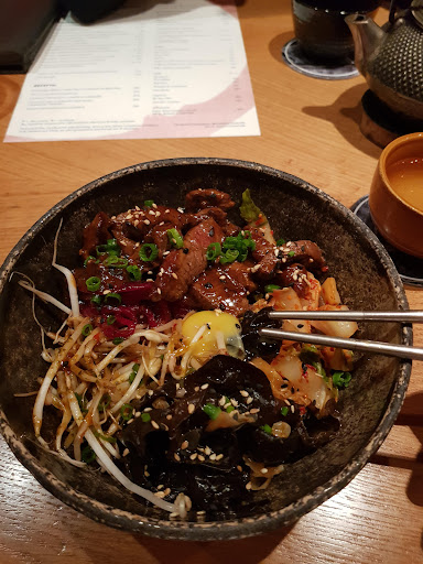 Great design! Really nice to be there, actually, nothing Chinese related, excluding a couple of paper things swinging above the bar, but anyway, great design. The only thing I would report is personal space. Regarding the price and description, it is a restaurant, and I like it, but when I was eating - I heard everything and was even able to push the person from another table by my elbow - isn't really good idea for such place. Dishes - it was tasty, delicious meat, and well-steamed rice, but the size.. it is enough to have a bite, but again, - what about chinese\asia at all? I am looking for something related, with huge portions and a few additional siders, not for European stile with 100gm of spaghetti in the abnormous plate. Drinks - tea in the teapot where it is boiling during the whole time you are eating? we are in 2001 again or it was just a bad joke? Just make a possibility to put it out of the teapot, nothing difficult at all. Service - 1st of all if you have glasses served on the table - it means the water is free. Don't put it there if it isn't. 2nd - if you are asking about bottling water you say - bottling water. Not just water, or would you like to drink? it was something I did not order but got and paid - with feeling like I was scammed. It works for 1 visit tourists but not for high-quality service and regular guests. The result - would not like to come back....