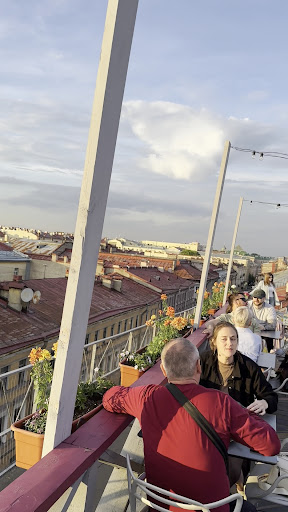 Read moreДанное заведение не понравилось вообще! Не могу сказать, что вид красивый. Если бы не исаакий, то смотреть вообще не на что. Этим и пользуются. Обслуживание ужасное, само заведение тоже не айс. Одним словом забегаловка. Пришли в субботу, хотели столик у окна, но понятно, что выходной день и столиков свободных не оказалось. Забронировали столик на понедельник. Пришли в понедельник немного раньше. Нас посадили за другой столик, так как наш ещё был занят. Чуть позже нас пересадили ещё за другой столик, так как этот оказался забронированным. Но наш столик уже освободился и нас почему-то туда не пересадили. Пришла компания и их посадили за наш столик. Но когда подошло время к нашей брони, эту компанию так и не пересадили. Что было очень не приятно. И ещё мы были с детьми. Так что смысла бронировать столик нет. На улице говорили всё забронировано. Но пока сидели, многие шатры были пустые. Однозначно в это место больше не пойду и никому не посоветую. Если вы хотите посмотреть на красивый вид города, то поднимитесь лучше на колоннаду. Или сходите в ресторан Гастрономика. Там и вид красивый, и уютно, обслуживание на высшем уровне, и меню лучше, больше и вкуснее! А цены такие же как в этой забегаловке. Ну а если хотите всё же там сфоткаться, то поднимайтесь смело на крышу и фотографируйтесь, без всякой брони столов и траты денег на их маленькое меню. Просто пришли, сфотографировались и ушли)) Там так можно) Так же есть в городе разные экскурсии по крышам. Жаль нельзя поставить звёзды на убывание. Ставлю одну, только за то, что вид на исаакий. Само заведение...
