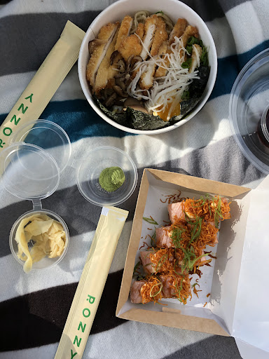 Обслуживание было быстро. Кружок по периметру бутылки, а роллы уже готовы. При загруженности около 20 минут отдача заказа. Девочка на кассе само очарование. Все разрекламировала и дала рекомендации, определённо отдельный плюсик.