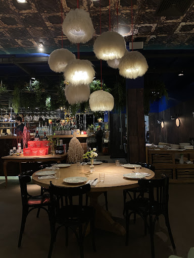 The food is delicious, plus there’s a good selection of wine and other beverages. The interior design is sooo well-done! Bright, with lots of interesting details, and it creates a lovely cozy ambience.