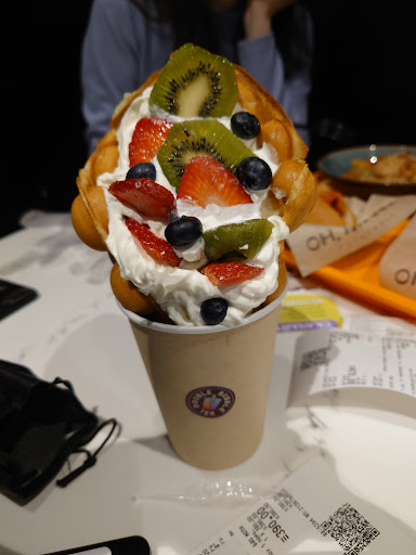 Была дважды. Один раз в Меркурии (м. Беговая) и один раз в Континенте на Стачек. Впечатления от каждого филиала абсолютно разные. Заказывала один и тот же продукт - Гонконгская вафля с фруктами. Меркурий - предупредили о большом времени ожидания, по итогу была очень аккуратная вафля и плотными сливками. Континент - не предупредили о большом времени ожидания (20-25 минут), когда принесли отдавать вафлю из неё прямо передо мной вывалился кусок сливок с киви. Вафлю тут же забрали якобы подправить, но в итоге отдали просто без этого куска сливок и киви. Сами сливки были тёплые, растаявшие. Пока ела, вафля продолжала разваливаться из-за этого. Было полное разочарование.