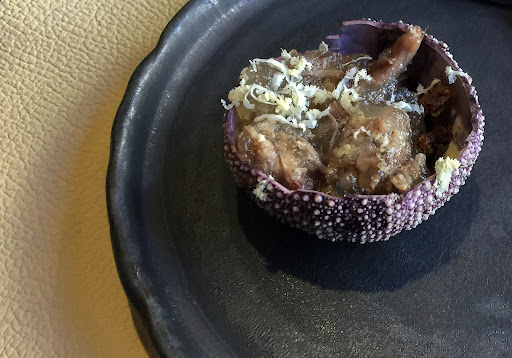 Такое дорогое и роскошное помещение в самом центре Рубинштейна не имеет права быть долго закрытым. Это нарушает целостность мироздания. И вот, наконец! Название написано не кириллицей, это плохо. Но оно яркое, звучное, лёгкое для понимания и запоминания. Опять же, все односложные наименования звучат круто ― Хант, Джеймс Хант. Интерьер замечательный, созданный для длительного рассматривания. Особенно в районе, извините, туалета. В зале местами от некоторых ракурсов возникает ощущение бизнес зала в хорошем аэропорту. Удивляет, что чуть ли не половину зала занимает производственная площадь, где готовят и хранят. Странно, но владельцам виднее. Миловидная хостес облокачивается на диджейский пульт. ― А вечером придет диджей и меня отсюда выгонит, ― сообщает она меланхолично. На столах – кожаные салфетки. Иногда на этих салфетках пишут числа, режут на мелкие кусочки и раздают гостям под видом гардеробных номерков. Персонала в зале много. Все чем-то заняты. Громко не говорят. Лица напряженные. Никто толком не улыбается, хотя попытки были. Официант боится сделать что-нибудь не так, отчего кое-что делает не так. А теперь еда. Лучше всего был сугудай из муксуна, коего с огромным удовольствием распредметил я не единожды. Причины тому следующие: