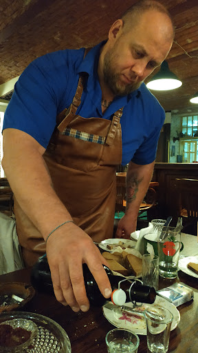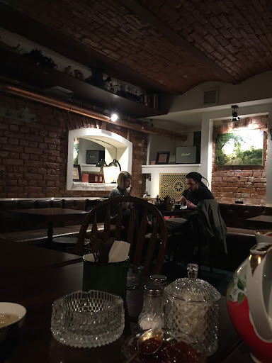 Странное заведение. Знаем и очень любим творчество Александра, как музыканта так и как актера, давно хотели сходить и вот выдалась возможность. Первое что не понравилось, так это отсутствие классического меню, все в устном виде. Цены естественно не озвучивают. Выбор тоже не велик - пиво только светлое (причем ни марки, ничего), чай черный/зелёный, есть ещё вино, там видимо тоже с выбором трудности (девушка за соседним столиком не выпила и половины бокала, так что наталкивает на мысли). Бармен кажется агрессивно настроенным, может мы выделялись среди обычных клиентов, непонятно. Пельмени да, понравились. Пиво оказалось неплохим. Чек от руки. Одно блюдо, две кружки пива и небольшой чайник чая, вышло 900₽, такое себе. Есть возможность оплатить безналом, это хорошо. В баре курят, для 2018...