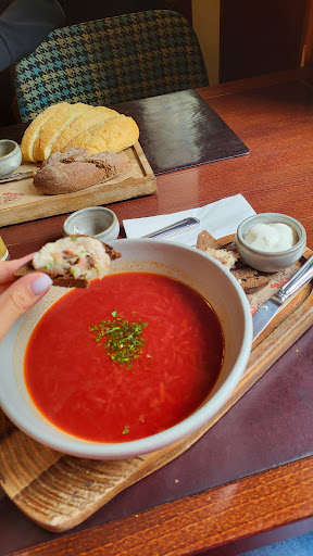 В этом ресторане самая вкусная еда,чем где-либо еще в Москве и Питере. Несмотря на то,что это пивной ресторан, здесь обычное меню и с супами, и со вторым, и с потрясающими завтраками. Таких огромных порций еды мне еще не предлагали нигде. Были с мужем очень голодны, закащоаи и суп, и второе. После того,как мне принесли борщ, с вкуснейшими булочками и салом и настойщей сметаной, меня едва ли хватило еще на котлетку с пюре. Но я следа все. Потому что такие вкуснейшие блюда невозможно оставить или позволить им остыть. Бравл повару. Просто всем поварам учиться у этого повара готовить блюда. Я была в таком восторге, в какрм не была давно. Официанты очень силые и приветоивые парни, красавчики. В заведении нет и намнка на пивной ресторан днем, разве что интерьер. Но никакого постороннего запаха. Исплючительно замечательный...