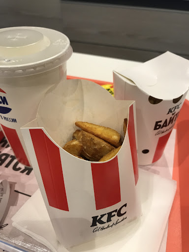 Read moreЗаходили ночью, часа в 4. Повсюду спали пьянчуги и пара драчунов начинали выяснять отношения, мы пока заказали куриные стрипсы, картошку и колу, отдали за это 760 руб на двоих, если бы это было съедобно еще куда ни шло, но тут стрипсы (КУРИНЫЕ - гордость и особенность KFC) как кусок дерева жуешь, картошка как половая тряпка, в коле льда больше чем кислорода в атмосфере. Ребзя, которые дошли в своих отношениях до драки начали уже кидаться стульями и сносить столы, так что мы собрали недоеденные дорогущие говняшки с собой и унесли ноги, чтобы не получить по голове стулом или еще чем повезет. Ну а дома даже кот не стал есть эту курицу, неспроста потом неделю желудок материл за этот гастрономический...