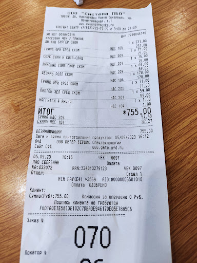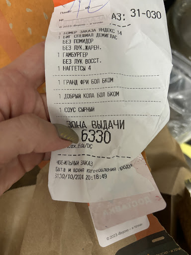 Read moreХорошая Еда! Много выгодных Комбо✅ Сервис✅ Чисто✅ Рекомендую этот ресторан ! Особенно было вкусное Биг Чикен Комбо!!! ✅✅✅ Но единственное что мне не понравилось, это то что я заказывал в приложении, и цены менялись в корзине! 😤 Хотел заказать Биг Чикен Комбо в приложении, пишет цена: стандарт 441 руб, А В КОРЗИНЕ 740 РУБЛЕЙ?! Объясните пожалуйста это Вкусно И Точка 😊 Впечатление немного...