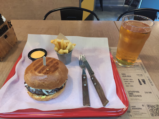 Burgers are not outstanding, but pretty decent, and they do have a great variety of them. Beer is the usual selection of good local craft, as it is almost anywhere in Petersburg.