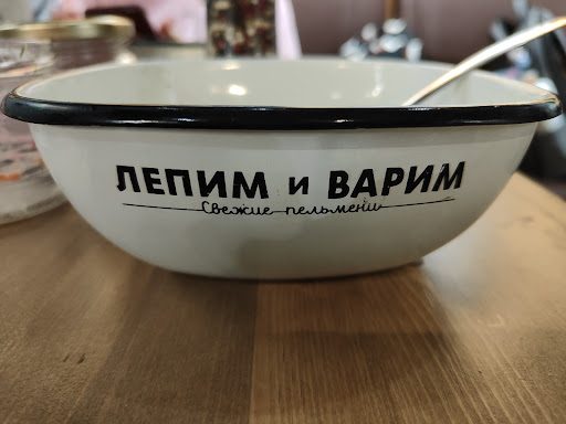 А антураж отличный: подвешенные к потолку мясорубки, светильники в виде кастрюль и советских банок, колоритный повар, лепящий при вас свежую порцию пельмешек.