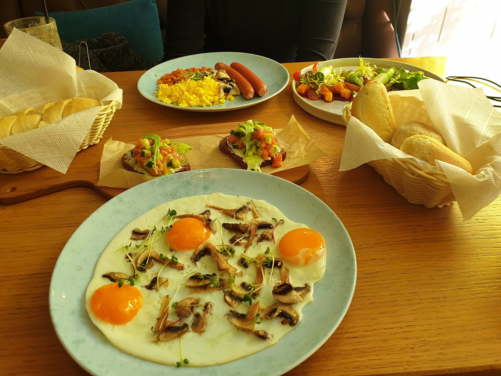 We've stopped here for our breakfast. Instantly draw from the advertisment of healthy food. The menu with pictures and a some basic Russian was easy to dicipher and our waiter spoke some English too. As the prices seemed to good to be true, we ordered more than two could eat. The portion were really filling. Absolutelly loved their latte as well as the interior. Cards were accepted here too.