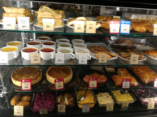 Чисто, уютно....дороговато, конечно, но пару раз в месяц можно себе позволить.... Хамовитые продавцы? Ничего подобного....А посетители сами замечали как ОНИ разговаривают с продавцом? Не однократно встречала хабалок натуральных - Вы мне ОБЯЗАНЫ улыбаться, я вас обосру с ног до головы, а вы мне улыбайтесь. Наблюдала картину маслом - стоит парень, лет 20-ти от роду....Откровенно хамит, выделываясь перед своей пассией.. Мне буше дай......Продавец совершенно спокойно, с улыбкой - Вам какое с маслом или со сливками? - ответ - Нет, не надо.... Даже мне захотелось спросить - А что не надо? Масло или сливки выковырять и будешь есть просто булку? .... Я сама не так давно работала в сфере обслуживания, поэтому знаю всю изнанку таких кафе и ресторанов.... Орать матом на продавца, потому что он не может дать вам сдачи с 5-ти тысячной купюры, это, простите, не просто наглость, а хамство несусветное....Обязана, вали меняй в сбербанк.... Это что вообще??? А если действительно НЕТ у нее сдачи??? Обвинять продавца в незнании ассортимента - тоже занимательная тема... Мне вон ту, за 109.....КАКУЮ????? Там целая витрина и всё по этой цене... Передо мной стояла женщина.... Корзиночку дайте...- Вам какую? - Что не понятно, за 109 которая.....А там их, этих корзиночек, штук 5 вроде бы.... Посетители начинают свое дурное настроение вымещать на продавцов...Люди, считающие себя интеллигентными, позволяют себе переходить на личности? Почему? Да потому что они ответить нам не могут, мы же покупатели всегда правы... Я часто бываю в Севере и наблюдаю разные ситуации и бывает очень жаль тех девчонок за кассами... А по поводу еды - я на обед всегда беру тыквенный суп, изумительный вкус... чай в чайнике? По мне так лучше свежезаваренный чай, нежели буду в кипятке мыть непонятный пакетик... Самое вкусное пироженое для меня это корзиночка северная. А по поводу скидки 25 %...Это не на кондитерские изделия, а на КУЛИНАРИЮ... Читайте внимательно, там это точно есть. Я после работы захожу, чтоб взять курник и пирог с капустой, поэтому точно знаю. Девочкам удачи, адекватных покупателей. Обязательно буду продолжать ходить...