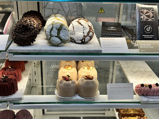 Read moreНесмотря на то, что кафе находится в торговом центре, всё достаточно уютно и красиво. Десерты и напитки вкусные. Коллекции пирожных постоянно обновляются, а так как пирожные сами по себе необычные и очень красивые, каждый раз хочется заглянуть и попробовать что-то новенькое. В преддверии Нового года хотели попробовать новогоднюю коллекцию пирожных. Спрос был велик и, чтобы заполучить какое-то пирожное, пришлось посетить не одну кондитерскую(можно заказать доставку, но мы хотели насладиться атмосферой)). Здесь мы тоже застали полупустую витрину((( Заглянули к вам ещё раз 29.12 перед Новым годом, но увидев пустую витрину в 18 вечера, даже не заходили. Плохо подготовились, ребята,...