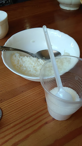 Заехала позавтракать в это кафе. Что сказать.... Заказала кашу рисовую, яичницу и чай с чабрецом. Каша-жёсткий рис, залитый молоком с кусочком масла, разогретый в микроволновке...с ним продали пол стакана сахара... Жесть! Яичница - терпимо... Запаренный желток, поджаренный белок. И! В кафе меня порадовал чай! Он реально с чабрецом! И полный чайник! В общем - пожелаю кафе поработать над меню. Господа, приготовить кашу это может любой! Особые таланты здесь не нужны. Желаю...