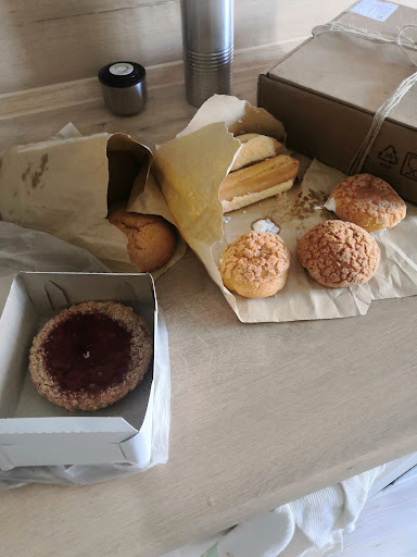 Read moreОтдельный вход, пара столиков внутри на случай дождя) Это именно булочная, не кофейня, и ассортимент выпечки действительно широкий. Впрочем, кофе тоже есть)). Цены очень даже приятные. Само помещение небольшое, расчитано на покупки, а не посиделки. Два опрятных приветливых сотрудника - видно, что руководство выжмет из них все соки; как следствие (почитал сейчас в отзывах), проверяйте, что вам собрали весь ваш заказ и ничего не забыли. Один прилавок и демократичные цены обеспечат вечную очередь из хотя бы одного покупателя перед вами))) Собственно выпечки...