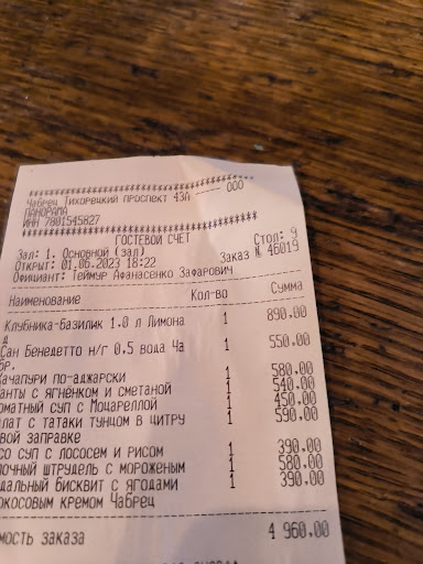 Долго искали заведение, где можно будет поесть хинкали ближе к ночи, многие места уже закрывались, позвонили перед приездом,администраторка, уведомила о времени работы ресторана и и том что хинкали мы все таки сможем поесть. УРА! Довольные мы сели на удобные диваны, понравился красивый аутентичный интерьер, широкий выбор блюд, приятная музыка, очень чистые и опрятные уборные, все это создавало очень приятное впечатление, но нам пришлось долго ждать официанта и при заказе узнали что хинкали больше нельзя заказать, спустя время выбрали суп, который как оказалось тоже нельзя заказать со всеми остальными горячими блюдами.Шикарный салат из томатов со странички меню ,оказался маленькой пиалкой помидоров с луком. В салате с хрустящими баклажанами было больше листьев салата, чем баклажанов, увы тоже остывших. Из оставшегося меню так же не получилось заказать баранье люля, только шашлык из ягненка, который оказавшись на столе был уже не горячим, хотя и вкусным. Подруга заказала суши, ролл был вкусный, но также остывший. Счёт пришлось просить несколько раз и довольно долго его ожидать, администраторка, возможно забыла передать просьбу, возможно проигнорировала. Подытоживая неприятно удивлён посещение этого места, вряд ли вернусь когда-нибудь ещё. Прикрепляю фото...
