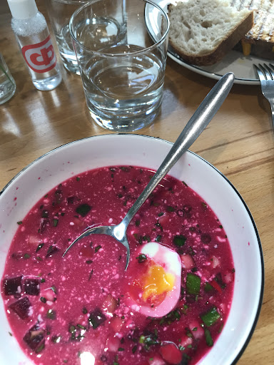 Read moreThis was the absolute highlight of my trip. I was looking for a place to eat some sourdough bread for breakfast (i’m a firm believer that if a place has the patience to make sourdough bread/pastries that means that their food will be delicious and of high quality). I didn’t make it for breakfast but the lunch was amazing! Satiating, salivating and healthy with a good amount of vegetables. Both the vegetarian and omnivore options were mouth watering. Same with their pastries. We took their kraffin and roma baba to peterhoff and had an absolute blast eating them in the park. We were highly recommended the roma baba, however I liked the vanilla kraffin more. Also— try the kombucha espresso. Oh and the people working there are...