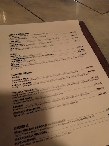 Если идти сюда, берите еду и пиво, о коктейлях даже не думайте. Из меню пробовали куриное филе с тыквенным муссом (370₽), салат с говядиной (340₽), бургеры holy cow (350₽) и can’t fly (320₽) - вот все было потрясающим. Особенно запоминается курочка, сделанная на гриле. Очень рекомендую. С пивом порядок, можно брать по вкусу. Особенно рекомендую обратить внимание на стеллаж с крафтовыми баночками (330-360₽) - оно того стоит!