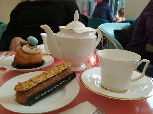 Read moreОчень вкусные и красивые пирожные, хоть и не все и не во всех коллекциях, но это больше вкусовщина уже. Что мне не понравилось: Из-за того, что все сюда идут пофоткаться и устроить фотосет, очень испортилась атмосфера самого заведения (когда оно только открылось, было очень мило, люди сюда приходили именно что поесть замечательные пироженки, приводили детей, в общем, милота). Сейчас ЦА это вереница модниц с айфонами, из-за которых прям на входе уже стоит объявление о согласовании фотосъёмок. Я не смогла нормально налить чай, потому что чайник (мы брали большой) тяжелый сам по себе, а с кипятком, так вообще неподъемный (( ручка неудобная - либо ты обжигаешь руку, либо ты не сможешь нормально его взять. В зале есть столики, которые сдвинуты, и у них столешницы в виде кружочков разного диаметра - не садитесь туда! Столы шатаются, эти кружкИ не удобные, все время боишься, что что-то упадет, разольется. У меня чай разлился два раза, просто из-за того, что стол ходуном. То есть, сначала я обожгла чайником руку, а потом сам чай разлила на пол:( Пирожные стоят на картоночке, она плоская. При подаче эту картоночку ставят на блюдечко, которое НЕ плоское. И когда ты ешь пирожное, то лучше придерживать картонку рукой, так как в целом все неустойчиво. Получаются танцы с бубнами. Сервизы красивые, приятные глазу, но если бы блюдца были просто плоскими, было бы намного удобнее.