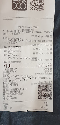 Read moreС начала странности, с которыми мы столкнулись в этом кафе. Когда мы пришли, то посетителей не было совсем (выходной день 18часов). Из персонала 3 человека. 2 повара и официантка. Сделали заказ. Нас попросили оплатить счёт сразу, до готовки. Мы спросили, где у них туалет, чтобы помыть руки (короносирус и все такое). Нам ответили, что туалет занят. Принесли еду. Туалет занят. Прошло ещё 10 минут. Занят. Я всегда думал, что для персонала отдельный должен быть туалет. Нет? В итоге подождав ещё не много, нас пустили в туалет для посетитилей с кодовым замком и паролем, который знает только персонал. Мы заказали на двоих 3 блюда. А получили только 1 ложку и 1 вилку. Странно. Теперь о еде. СУП ФО понравился. Лапша с курицей - нет. Ооочень сильный запах и вкус копчености, которой там быть не должно. Нэм...