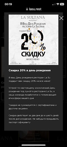 Read moreМеню без картинок 🥗. Непонятно что будешь есть и как это выглядит. Кальянщик не смог сделать кальян на грейпфруте ,хотя в меню есть . Когда заказали второй кальян , то ждали его целый час(хотя в зале было всего 2 кальяна и тема типо очередь не прокатит ) , потом попросили официанта позвать кальянщика и он сразу принес кальян сильно раскуреный . Походу его там курили и нам не несли т. к . выдохся кальян очень быстро и вкус был не такой насыщенный каким должен быть Поздравление от девушки с микрофоном стоит 2 000. За эти деньги она умудрилась перепутать имя . Поздравление очень вялое , да и поздравлением это не назвать . Не советую в общем эту процедуру. Пойду ли я еще раз в...
