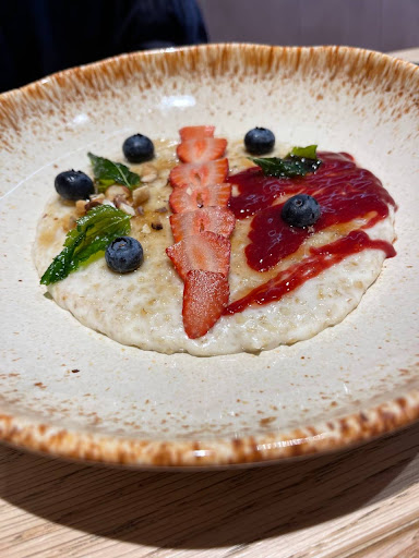 Новое заведение, специализируется на завтраках. В целом, кухня разочаровала (по сравнению с другими завтракательными местами). Брали каши (овсяную и рисовую с манго), панкейки и завтрак с авокадо и яйцом пашот, а также напитки: чай с чабрецом, пуэр на вишневом соке и кофе. Каши нормальные, но рис обычный, манго в каше мало (отличается от картинки в меню), а в овсянке как будто супербыстрые хлопья были, которые как мука, а не как хлопья, но ягоды были свежие. Большой минус каш - очень-очень сладкие, прямо ту мач. Было бы окей, если заведение не специализировалось на завтраках, а так в Питере много мест, где такого рода блюда готовят намного вкуснее и без такого количества сахара.