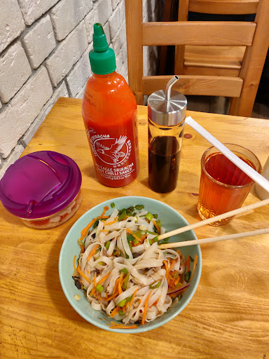 Вот уж не думала, что мне может понравиться место с вьетнамской кухней, но увидев в 2gis у заведения сначала наличие вегетарианского меню, потом высокий рейтинг, а потом ещё и скидку по промокоду от тугис 20%, поняла, что это знак и решила дать заведению шанс. В субботу вечером здесь оказалось немноголюдно, уютно, мне вежливо и подробно всё объяснили и рассказали, на столе было всё необходимое, в том числе соевый соус и настоящий чили соус для любителей поострее. Меня покорили: хорошая вытяжка и отсутствие сильного запаха (все сильнопахнущие/сильнодымные жареные заготовки тут делают заранее, до открытия кафе), мята в лапше с овощами (можно отказаться, но это вкусно) и чай за 50 руб. в большом гранёном стакане!). В целом вьетнамская еда оказалась намного более свежей и полезной, чем я думала) Спасибо Деду Хо за приятный, недорогой (даже без скидки), вкусный и сытный ужин. Обязательно приду сюда снова, уже с мужем. По секрету - как я поняла скидка будет действовать только до конца марта!...