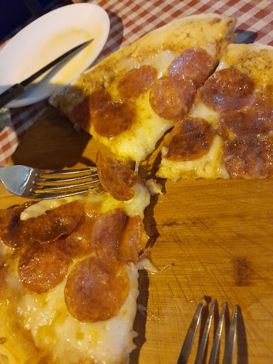 Повар очень постарался и сделал каждый, абсолютно каждый ингредиент отвратительным. Вместо салями ВНИМАНИЕ обычная сырокопченая колбаса из супермаркета нарезанная!! Сыра в 3 раза больше чем надо и не того сорта(был расплавлен какой то российский, есть не реально), тесто влажное и пышное. Все это в жутком количестве масла, как будто пиццу полностью окунули в него и подали.