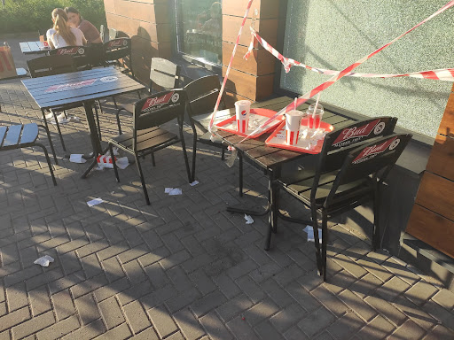 В последнее время систематически наблюдаю неубранный зал с присутствующей налицо антисанитарией. Неубранные переполненные мусорные баки, разбросанные пакеты и бумага, разлитая газировка на сидениях, остатки еды на полу и столиках.