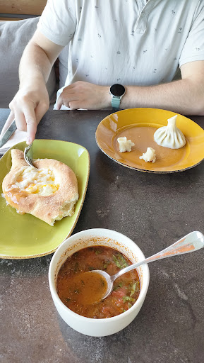 Read moreК обслуживанию претензий нет, официант старался очень. Возможно упущение самого ресторана- не было замены приборов и тарелок...салаты и горячее ели из одной тарелки... Поясню: мы заказали разные блюда и ели их вместе, накладывая в отдельные тарелки...так вот как дали в начале, так до самого дессерта и не меняли))) думаю, ресторану надо пересмотреть этот момент... Три салата мы заказывали, в целом они хорошие, но..действительно вкусный, уровня хорошего ресторана только теплый салат с хрустящими баклажанами... Салат с рукколокй и салат с рыбой( даже не запомнила названия) очень посредственны... На горячее мы брали баранину на углях. Сьесть можно. Но я бы не стала это боюдо рекомендовать друзьям. Баранина, и это карэ!!!, Жесткая, пресная..без изюминки... Так ее готовят неопытные хозяйки... вообще ощущение, что нам ее разогрели в микроволновке ...Хачапури с грушей - вот это да! Это действительно оригинально и вкусно Дессерт...я брала шоколадный... Невкусно, ощущение, что поела какао "золотой ярлык". Не могу сказать, что я всем недовольна. Нет...но приходя в ресторан ждешь изысканых блюд, приготовленных на высоте. Счет в целом на троих потянул на 10 тысяч. Была среда, для женских компаний 50%. Так вот реально, для уровня приготовления того, что мы ели, даже половина цены- завышено. Уютные кабинки, аля-восток( хотя и тут дизайнеры недоработали, не выдержали убранство в стиле, а намешали все). Посидеть в веселой компании можно. Зайду ли еще? Возможно, но только если очень голодные и нет выбора, где еще посидеть с друзьями Еще насмешил момент, как к нам в кабинку( шатер) ворвался кальянщик, перепутав клиентов))) мы с юмором, но такое появление шумное и наглаватое вряд ли кому-то скрасило бы вечер. В целом: место я бы не стала рекомендовать друзьям, и целенаправленно туда больше не пойду. Еда уровня: сьедобно, но нет...