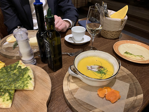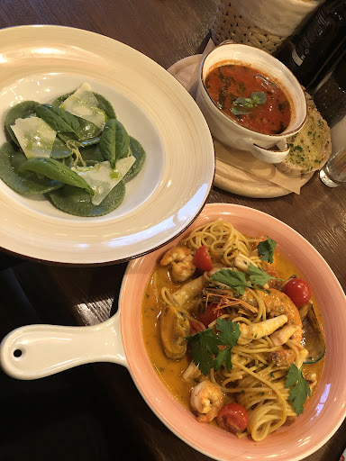 The food was sooo good. I've never had such a tasty pizza and pasta dish. I will be coming back every time im im St Petersburg. The prices are very reasonnable. Like 14$, 700 rubles for a more expensive dish. Service is alright, but the food is whats important and everything came in a reasonnable amount of time and plates where hot. I would recommend 4 cheese pizza. 10/10 recommend. And there are nice things around you can go see after lunch, we had a nice walk afterwards....