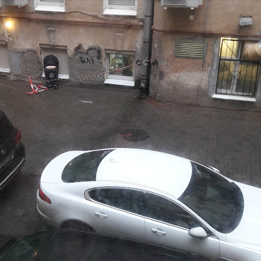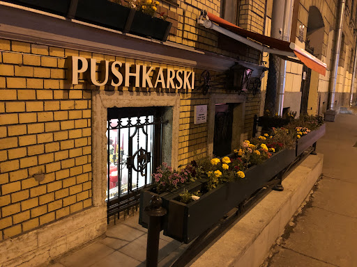 Read moreПочему ресторан традиционной русской кухни называется по-английски? Непатриотично как- то.. в интерьере переизбыток пафоса- золотые кальяны, яркая восточная мозаика на полу, тёмная остроугольная мебель- ни капли чисто русского тепла... но самое отстойное - мы, жители-аборигены- соседи ресторана всё лето и осень в ужасе терпели и ждали окончания их масштабного ремонта,- а это- замена окон, вытяжек и тд, а это долбежка 2х метровых стен, очень-очень шумно ( пришлось даже уехать на время с детьми в деревню, тк долбежка начиналась во время их дневного сна)...ресторан открылся несколько дней назад, а нам на память остался этот отстойный вид - знакомьтесь, ресторан традиционной русской кухни pushkarski и его владелец- вид сзади. Эй дядя, я хочу другой вид из окна, поприятнее, позовите детей, они бесплатно пусть хоть граффити цветы...