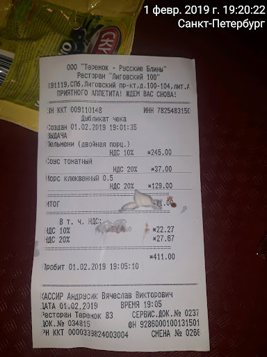 Read moreЕхали специально в этот теремок покушать. Подошла к кассе хотела заказать еду, молодой человек на кассе смотрит как на дуру и говорит: «есть возможность по карте или qr коду?» Я отвечаю нет. У меня была наличка – 1000 рублей. Смотрит дальше как на дуру и говорит размена нет, может все таки по карте? Я говорю, а размен появится? Сказали да, но непонятно через сколько. Зашла снова через минут 15, говорю и что делать я пришла покушать сюда с наличкой в чем проблема? На что ответил молодой человек: «ну все платят картой» То есть просто в заведении не было учтено, что заходят люди с наличкой. Где такое видано? Может есть закон, который гласит, что нужно оплачивать только картой? Это возмутительно, считайте, что с наличкой нас тупо...
